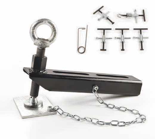 Set è composto da 5 differenti morsetti ad “aletta” ed a gancio le cui dimensioni permettono di entrare ed impegnare la maggior parte dei chiusini e di fornire un solido punto di presa della leva pieghevole APS90 o APS80, i morsetti sono forniti in uno spillone di trattenimento che ne impedisce lo smarrimento.
