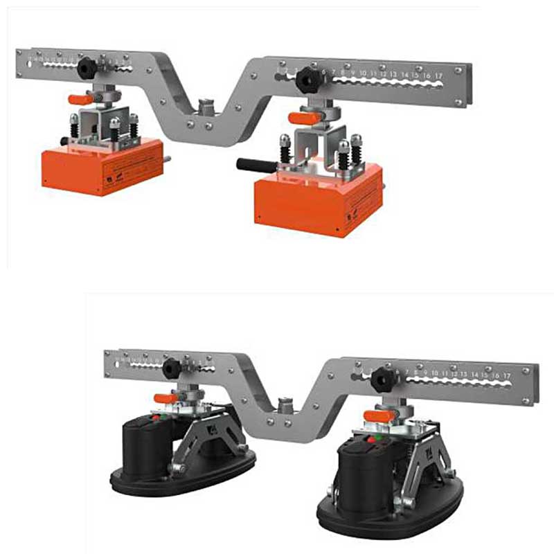 Il bilancino doppio per i sistemi di aggancio è la soluzione ideale per semplificare e rendere più sicuro il sollevamento dei chiusini. Progettato per essere utilizzato in combinazione con i magneti Rhino e la ventosa GRABO, garantisce massima versatilità, adattandosi perfettamente a diverse superfici e condizioni operative.